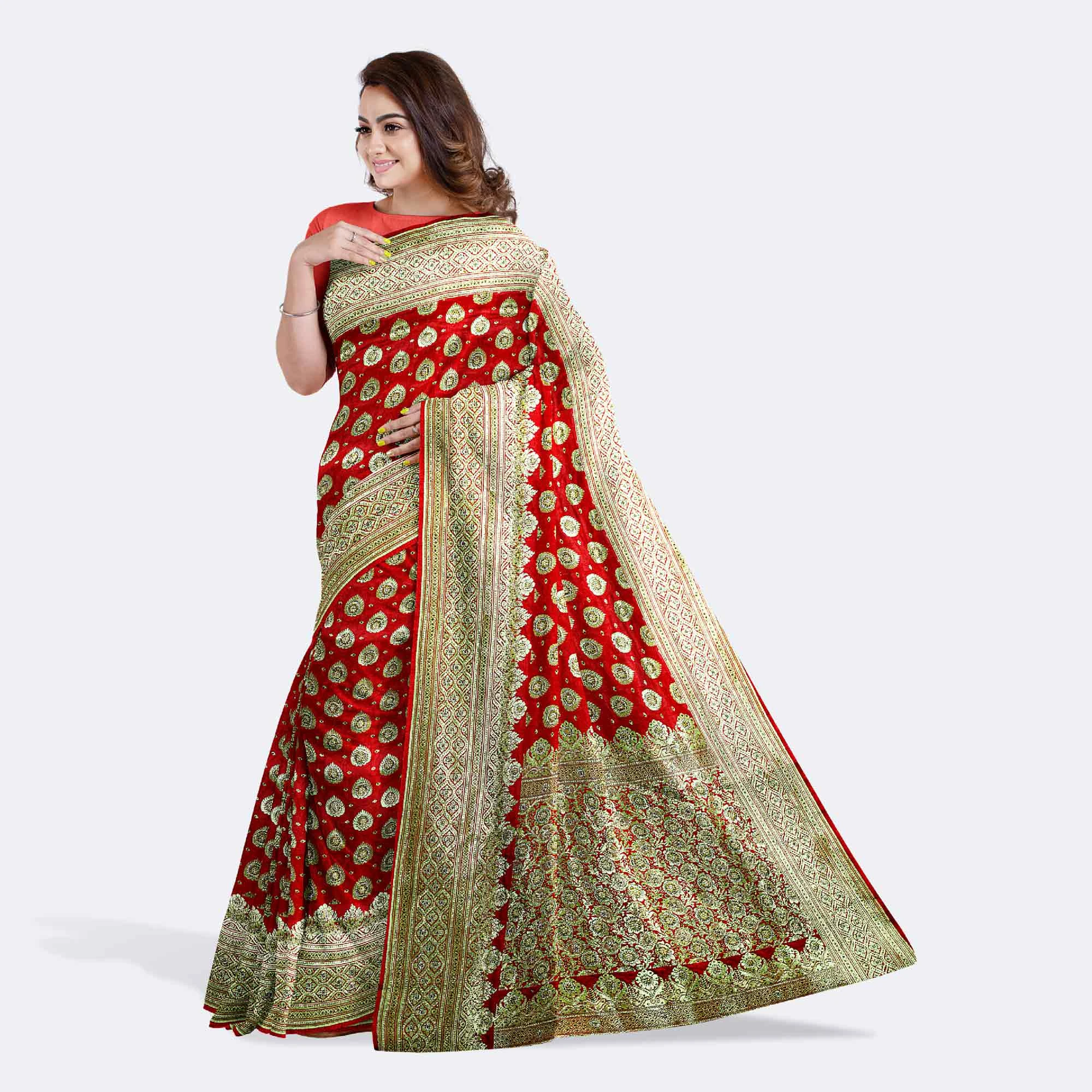 লাল কাতান সিল্ক শাড়ি – হাতে বোনা নক...